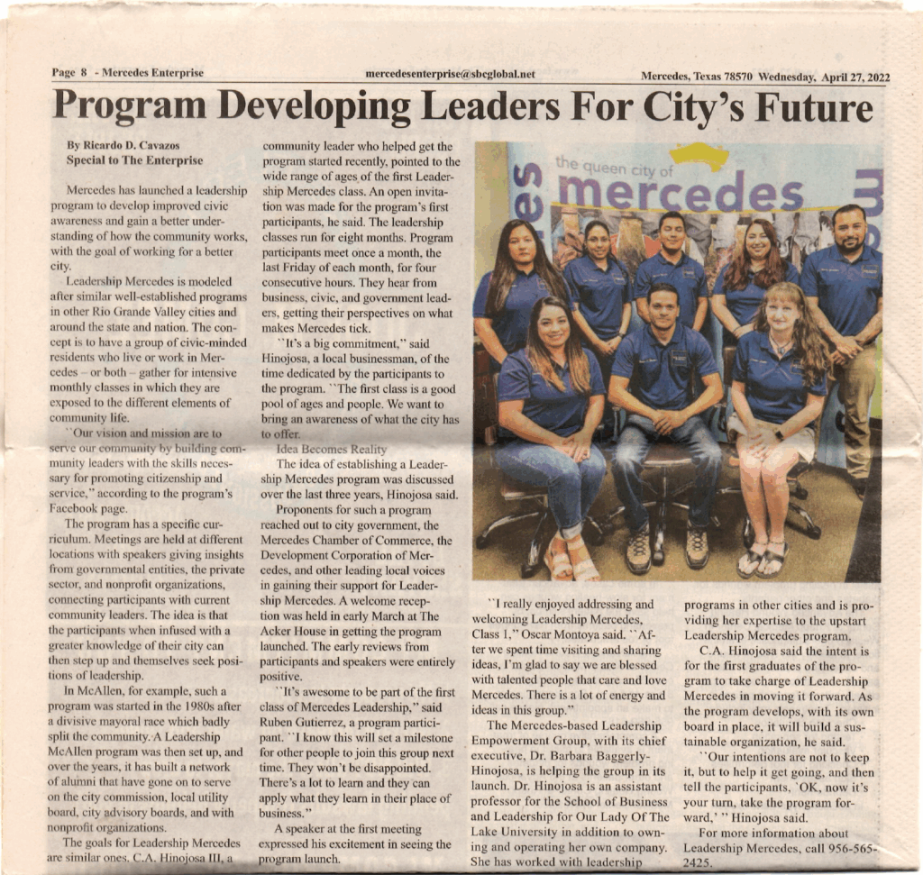 Proud to have been part of the first class of Leadership Mercedes in Mercedes, Texas. (2022)
